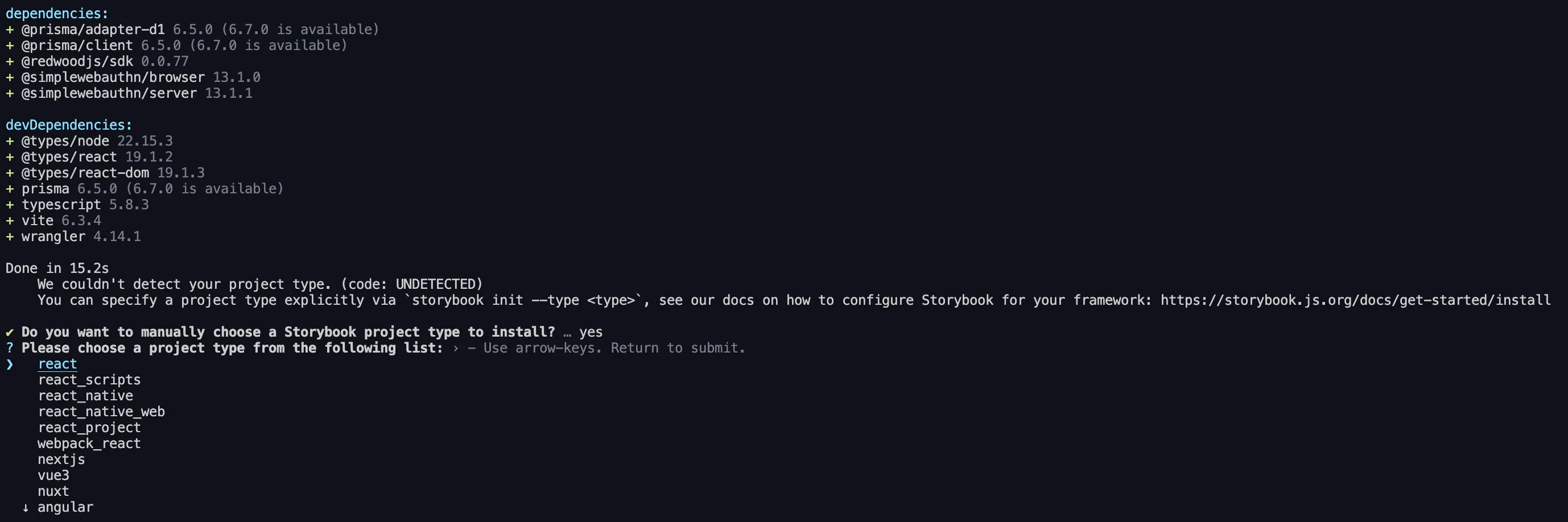 Section titled “Installing Storybook”Because the RedwoodSDK is based on React and Vite, we can work through the “React & Vite” documentation: